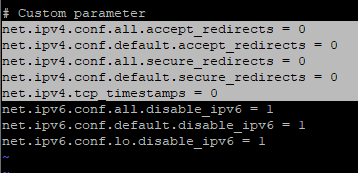 | 조치필요 | The net.ipv4.conf.all.accept_redirects sysctl variable is set to 1, expected 0. The net.ipv4.conf.default.accept_redirects sysctl variable is set to 1, expected 0. The net.ipv4.conf.all.secure_redirects sysctl variable is set to 1, expected 0. The net.ipv4.conf.default.secure_redirects sysctl variable is set to 1, expected 0. Able to determine system boot time |
