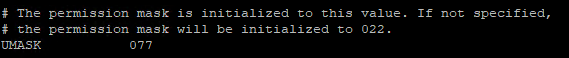 | 조치필요 | The umask value was found to be 0022 but was expected to be 0077 |