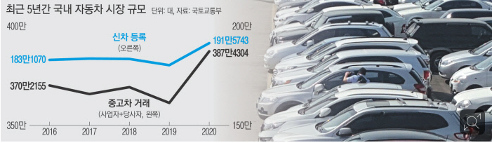 위의 자료에서 중고차 시장이 의외로 규모가 어마어마하게 큰 걸 알 수 있습니다.