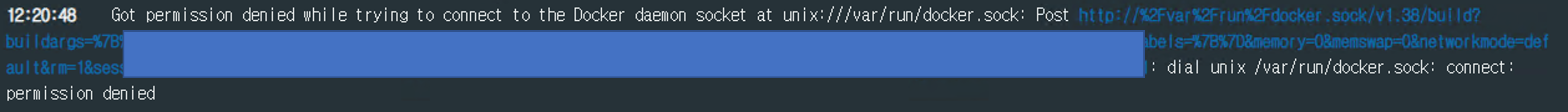 Got permission denied while trying to connect to the Docker daemon socket at unix:///var/run/docker.sock: Post http://%2Fvar%2Frun%2Fdocker.sock/v1.38/build?buildargs=%7B%7D&cachefrom=%5B%5D&cgroupparent=&cpuperiod=0&cpuquota=0&cpusetcpus=&cpusetmems=&cpushares=0&dockerfile=Dockerfile&labels=%7B%7D&memory=0&memswap=0&networkmode=default&rm=1&session=klv1s7gcvua6o8j7srtt572zk&target=&ulimits=null&version=1: dial unix /var/run/docker.sock: connect: permission denied
