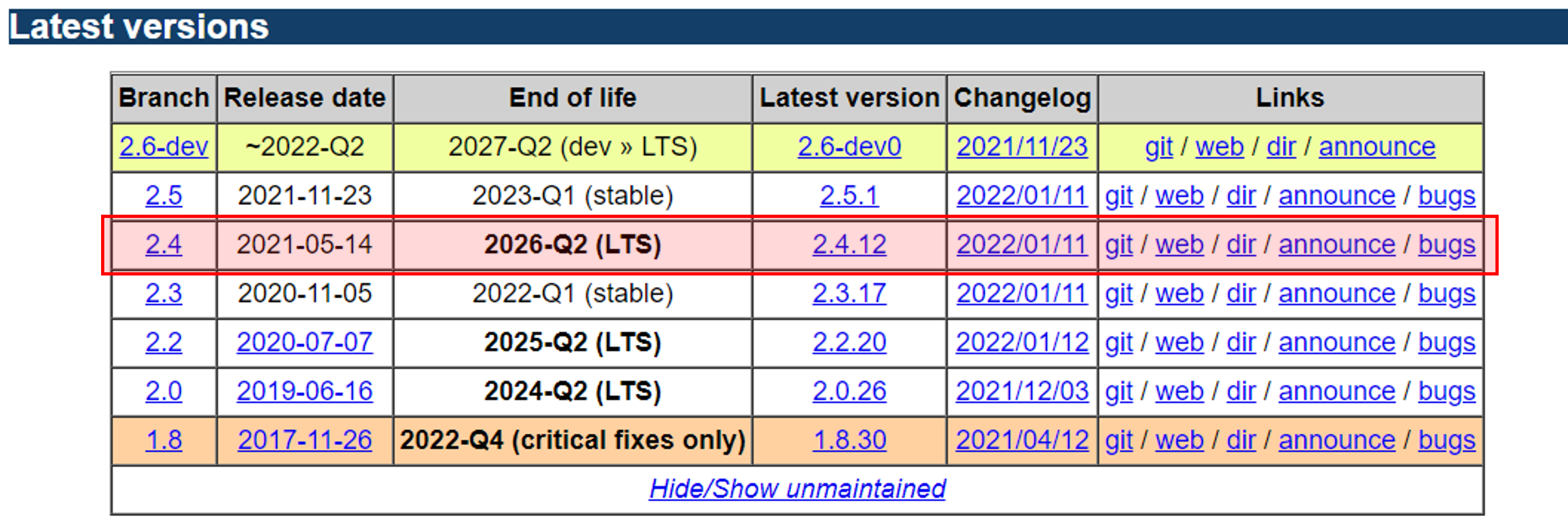 End of Life가 가장 긴 버전을 선택 2.4.12!