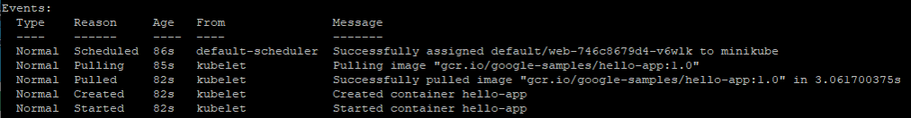 $ kubectl create deployment web --image=gcr.io/google-samples/hello-app:1.0