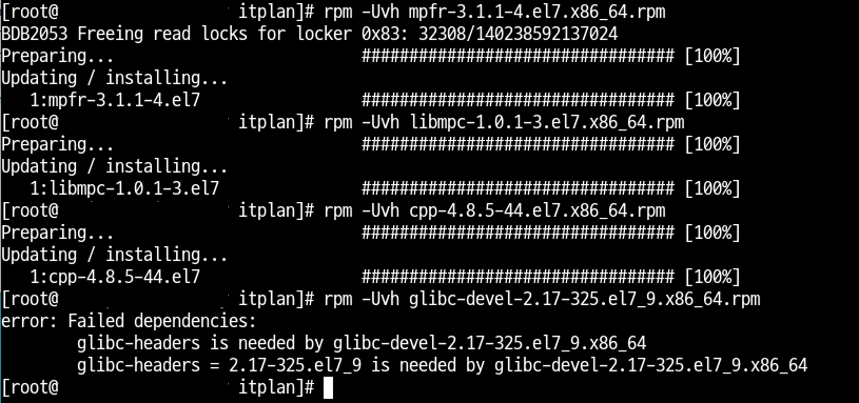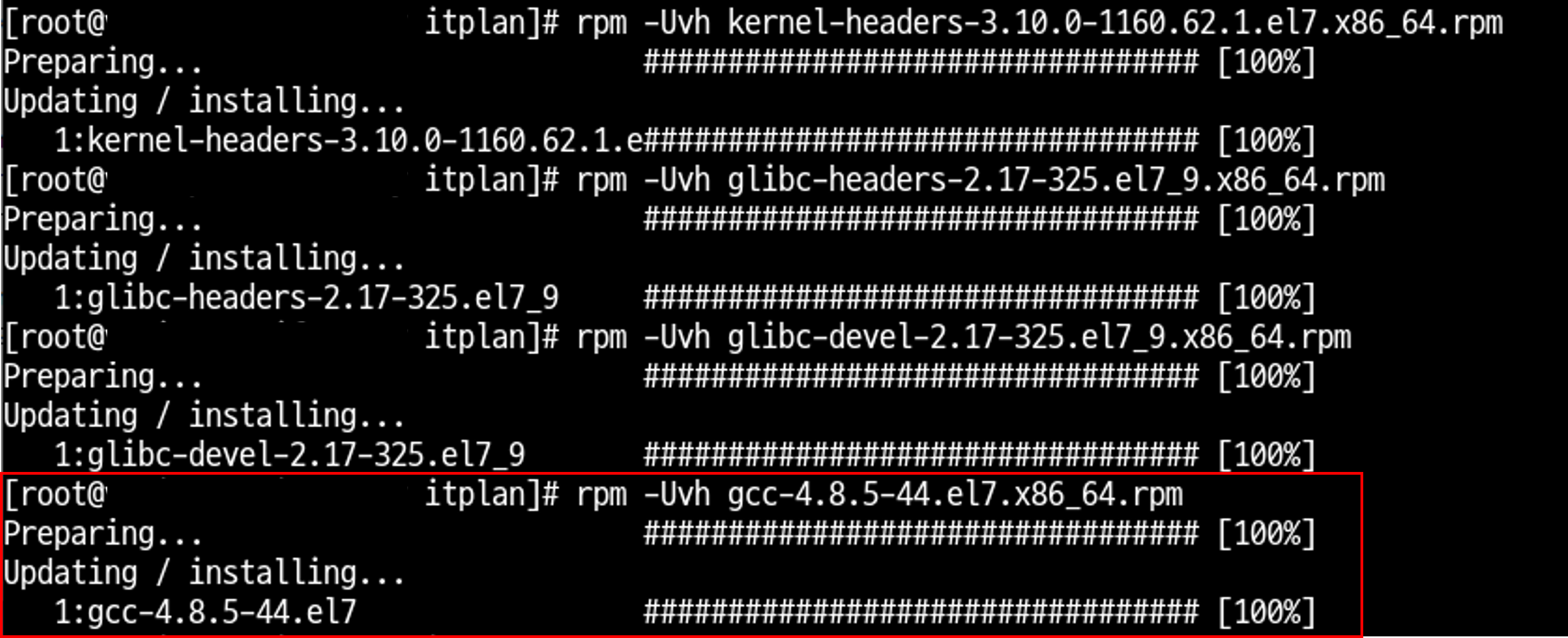 모두 -Uvh로 진행한다. )