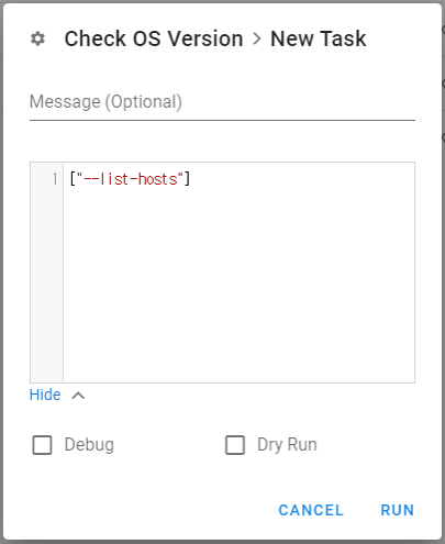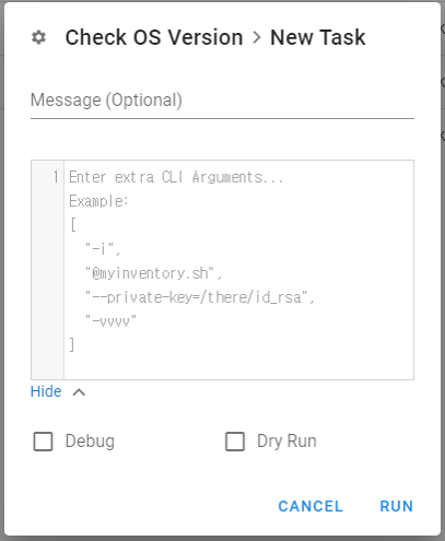 Extra CLI Arguments를 활용하면, Playbook을 실행시마다 내가 원하는 옵션을 추가하여 실행할 수 있습니다.