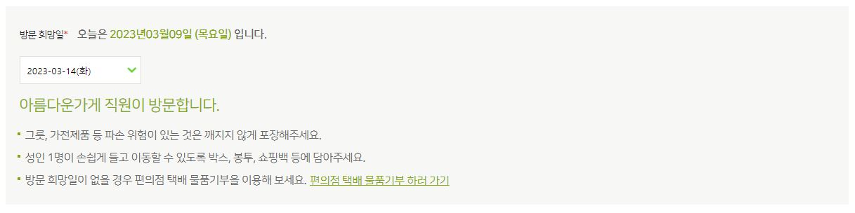 그리고, 물품수거를 위해 직원 방문 일정을 신청합니다.