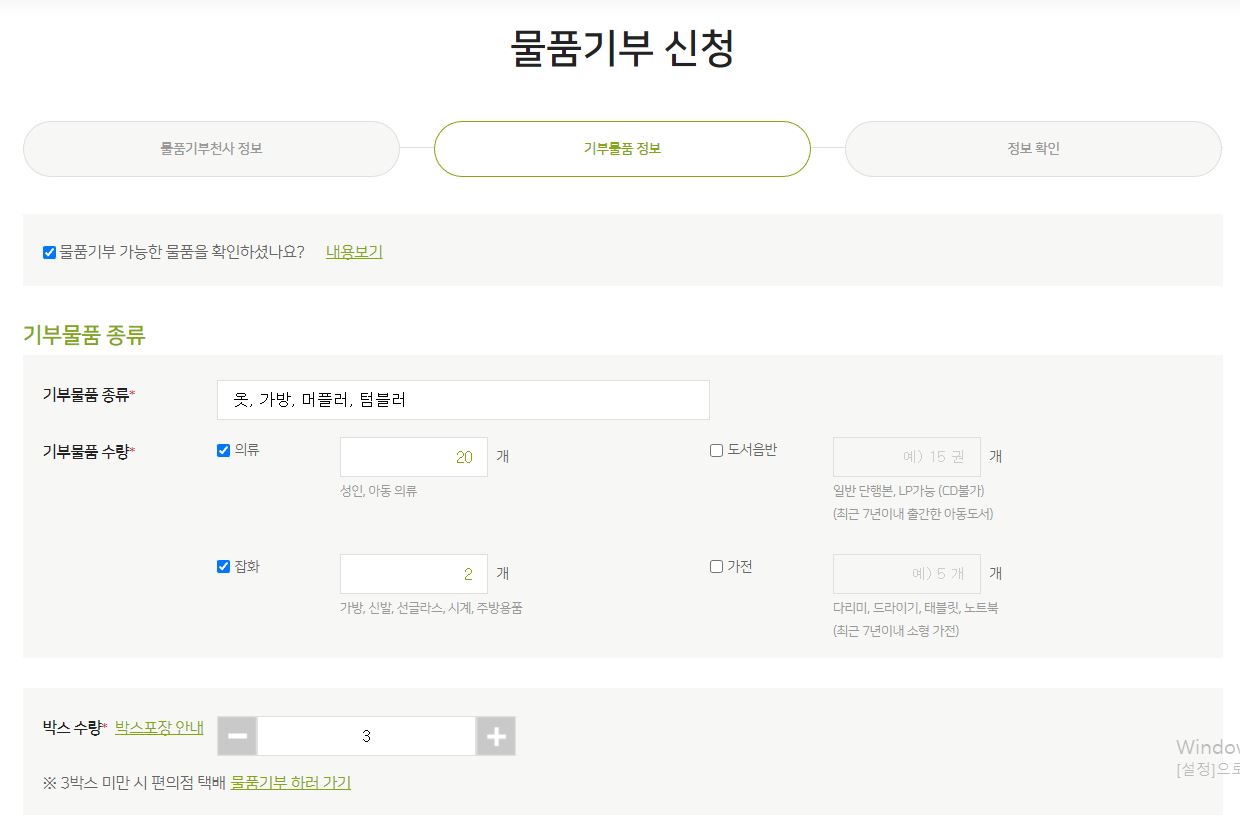 내가 기부한 물건들의 물품수량을 작성합니다.