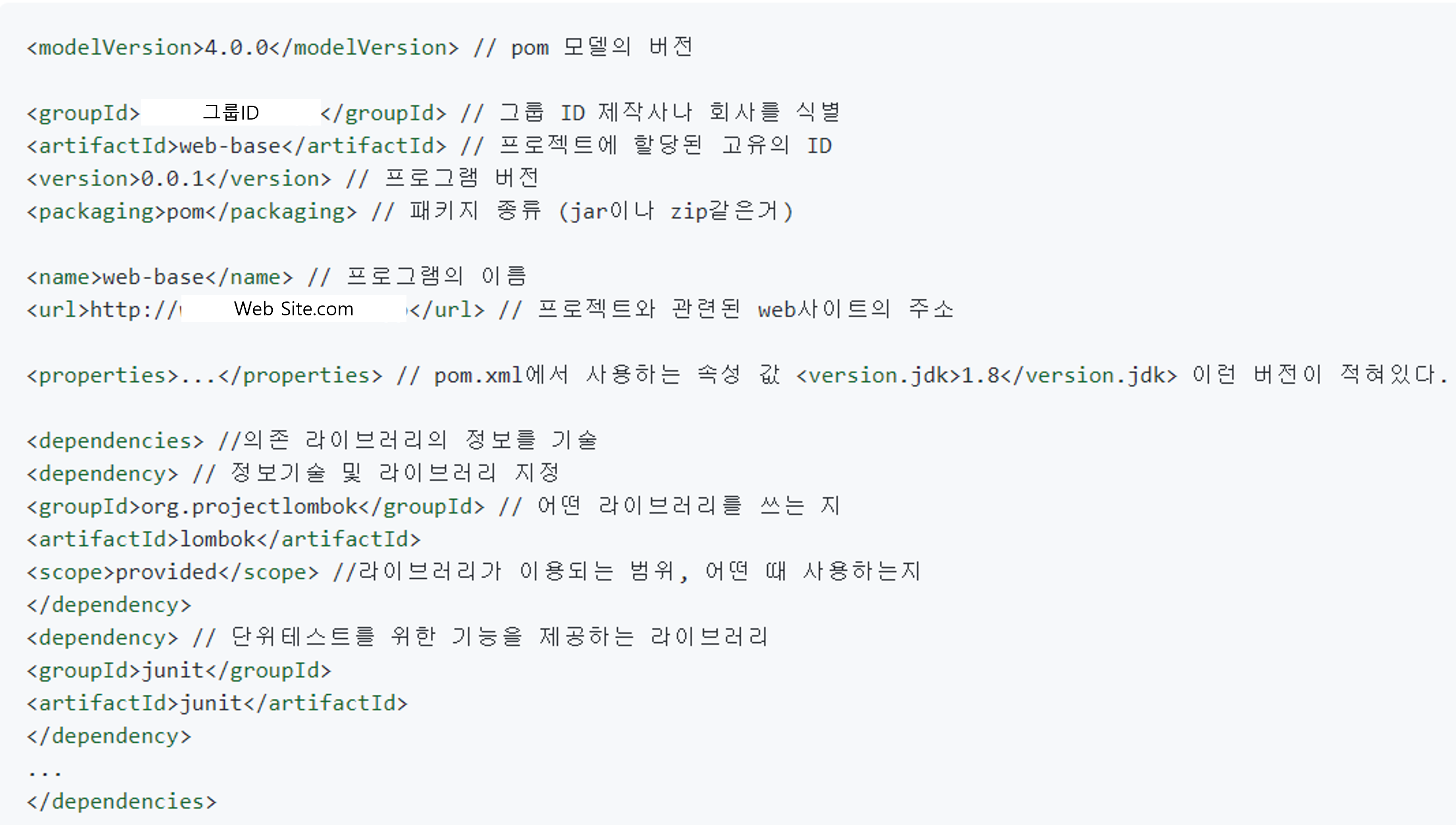 프로젝트 개체 모델(POM - pom.xml) 은 Maven이 빌드할때 필요한 정보를 작성한다.