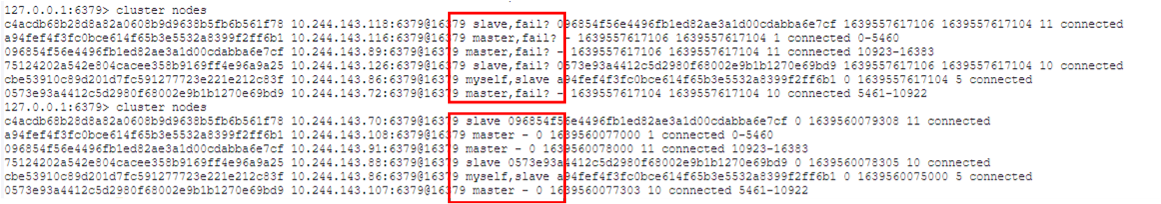 Nodes 연결 안되어서 cluster 깨져있을때는 상태가 fail로 보인다.