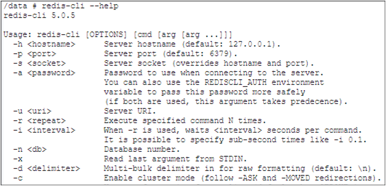 $ redis-cli -h <target ip> -p <target port> -a <Password>