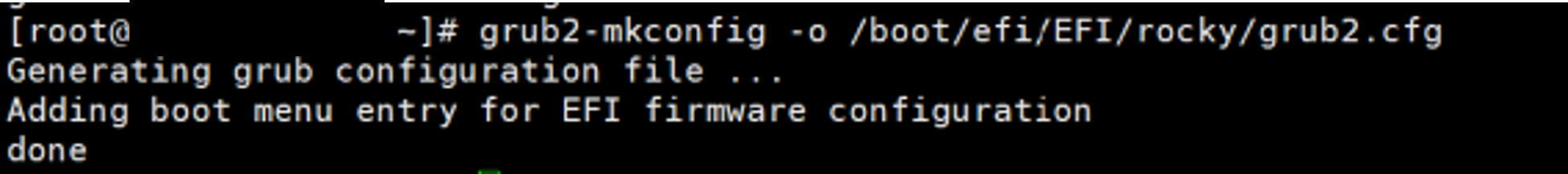 # grub2-mkconfig -o /boot/efi/EFI/rocky/grub2.cfg