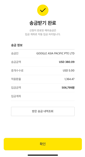 마지막으로 수취사유는 "광고 관련 대금" 으로하고, 지금대급에 동의해주시면 됩니다.
