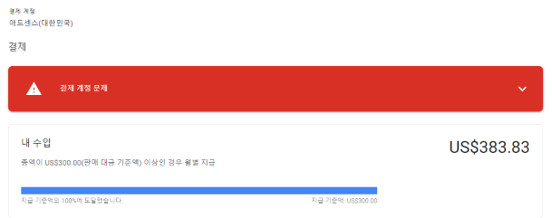 애드센스 수익금은 $100 이상부터 수익금을 지급받을 수 있습니다.