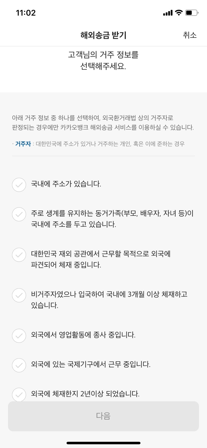 상품 설명서를 읽고, 고객님의 거주정보는 "국내에 주소가 있습니다. "