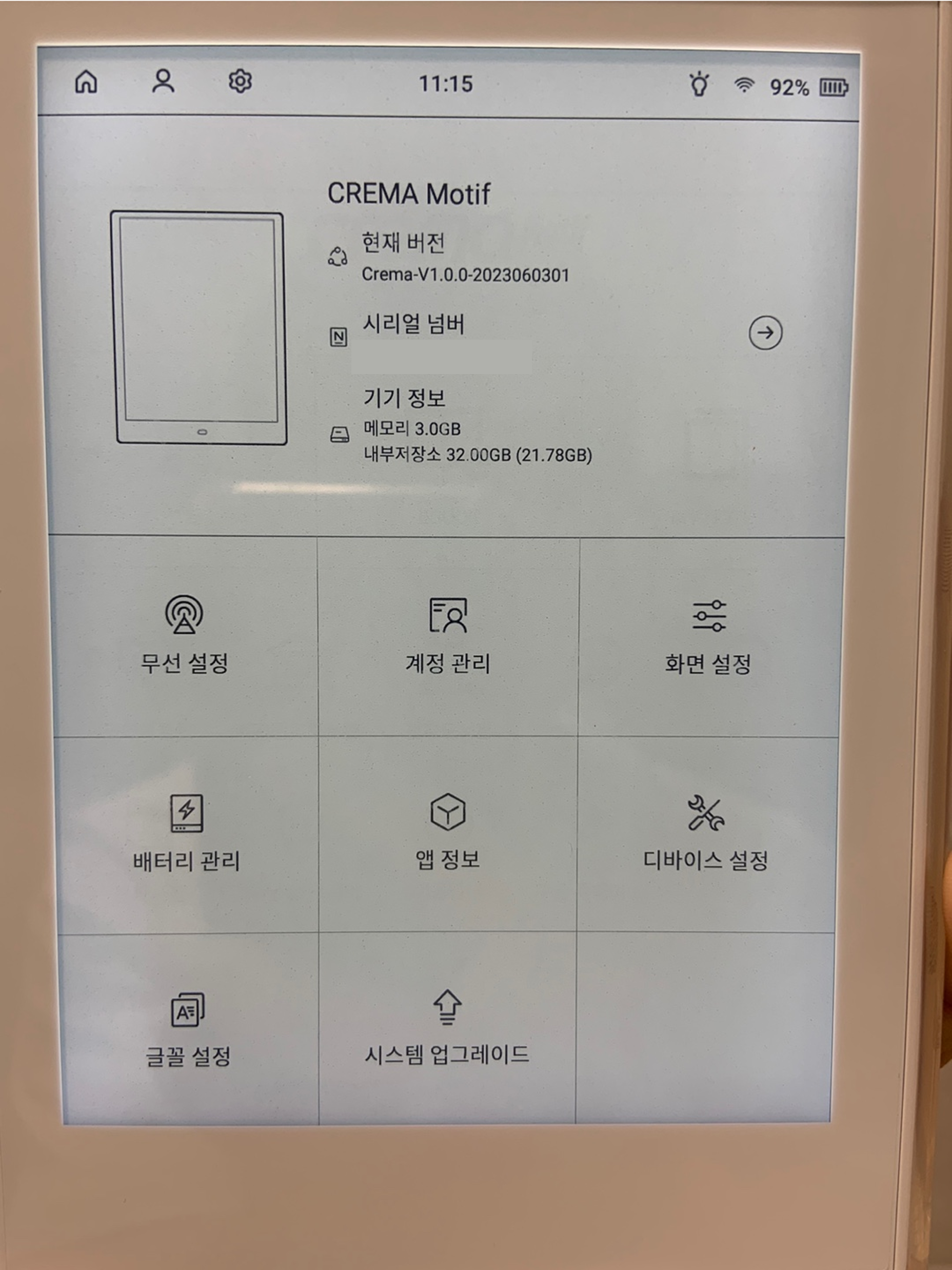 전자책 e북 리더기 크레마 모티브가 배송이 왔습니다!