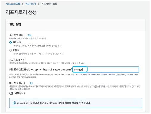 - Private Repository : 공개적으로 표시되지 않으며, 접근을 위한 IAM 및 Repository Policy 관리