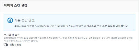Repository에 이미지가 Push된 후, 자동으로 Scan을 할것인지 설정.