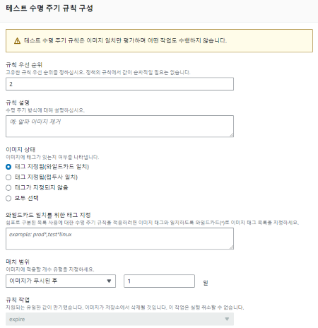 Repository에 업로르된 컨테이너 이미지에 대한 LifeCycle 정책을 규칙으로 등록할 수 있다.