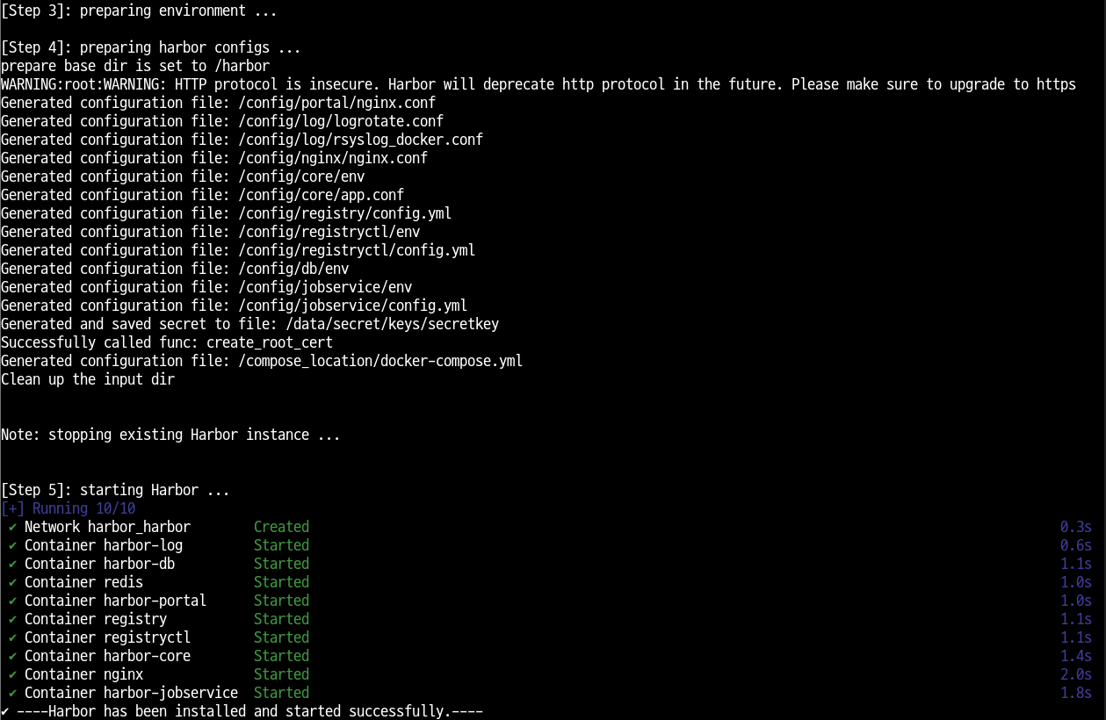 Harbor를 구성하다가 설정을 변경하여 재구성하는 경우!Harbor를 이미 사용하다가 구성을 변경하는 경우! Harbor를 재구성하려면 아래의 단계를 수행하세요. 1. Harbor를 멈추세요. sudo docker compose down