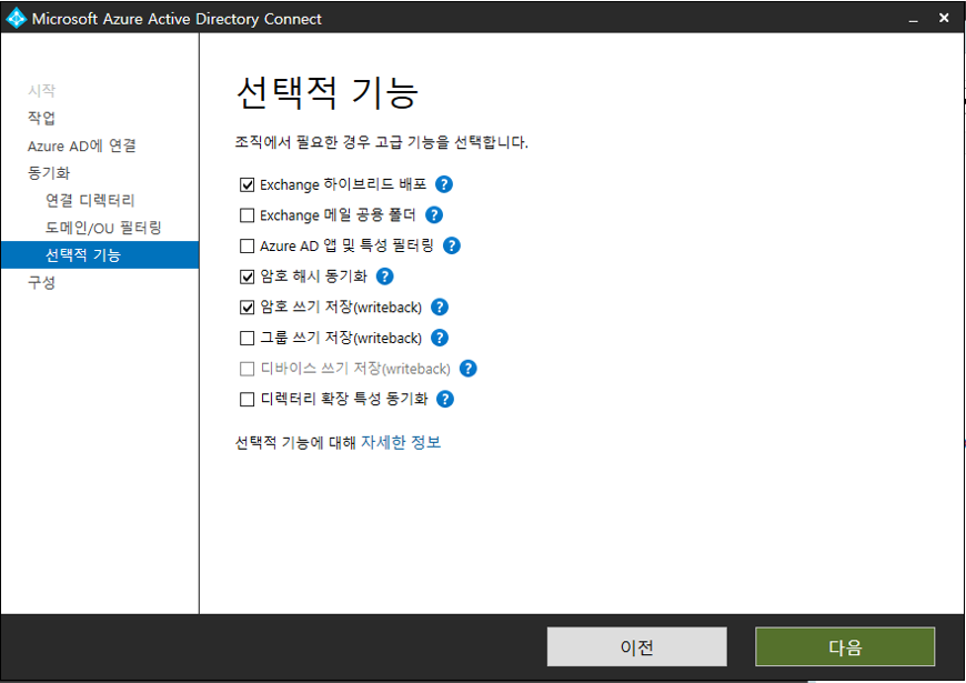 1) Azure ActiveDirectory Connector : 암호 쓰기 저장(writeback) 활성화